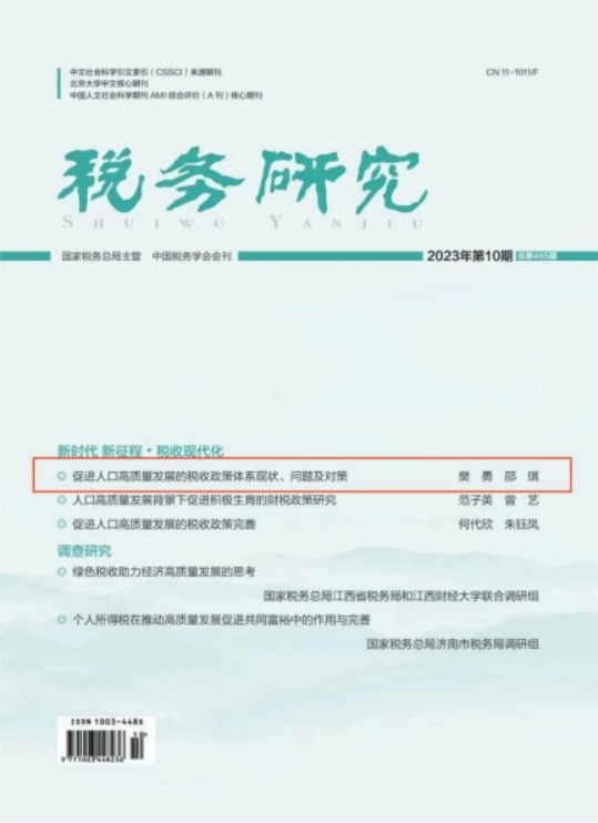近日,由必一运动师生撰写的论文《促进人口高质量发展的税收政策体系现状、问题及对策》在中文A类期刊《税务研究》2023年第10期作为封面文章刊发。以下为文章主要内容。