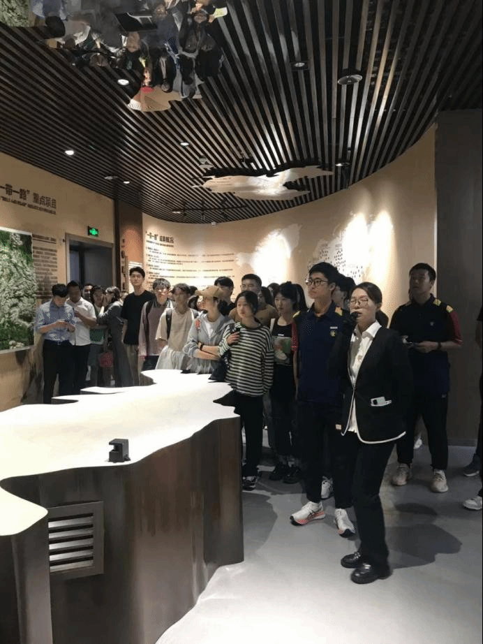 下午,同学们乘车前往“一带一路”国际合作高峰论坛展示中心,在讲解员的带领下在丰富展品与会场展示中沉浸式体验了“一带一路”的发展与成就。全面回顾了展馆全流程还原的2017年首届“一带一路”国际合作高峰论坛这一重大历史事件,深入理解了“一带一路”倡议的重要意义,感受到了“丝路中国,古今交融”的大国自信。
